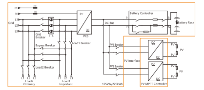 | Входной переключатель | 2шт 250А/1000В постоянного тока/2П, 2P/250A/1000В постоянного тока/2P, что соответствует 2 блокам контроллера PVMPPT |