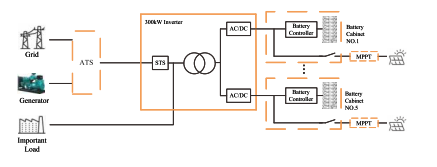 Особенность В системе используются модульные инверторные блоки в параллельной конфигурации, где вход постоянного тока каждого инверторного модуля соответствует отдельному аккумуляторному шкафу, позволяя управлять кластером, чтобы устранить циркулирующие токи между шнуры батареи. Модули питания переменного/постоянного тока поддерживают гибкое развертывание как по количеству, так и по количеству. номинальная мощность, с максимальной мощностью модулей 60 кВт в параллельном соединении из 5 устройств. конфигурация. Выход переменного тока от силовых модулей подается через трансформатор. изолированный выходной каскад, обеспечивающий питание нагрузки с высокой устойчивостью к текущий шок. Гибридная ESS использует фотоэлектрическую интеграцию с постоянным током, обеспечивая высокую эффективность преобразования энергии и оптимизирована для автономных сценариев с использованием фотоэлектрических систем генерирующая мощность превышает потребность нагрузки; Контроллеры MPPT для наружного применения интегрируйте функции сумматора и MPPT в одном защищенном корпусе. Полная система включает в себя вариант дизель-генератора ATS, гибридный вариант мощностью 300 кВт. инвертор, PV MPPT-контроллер и аккумуляторная система хранения энергии.